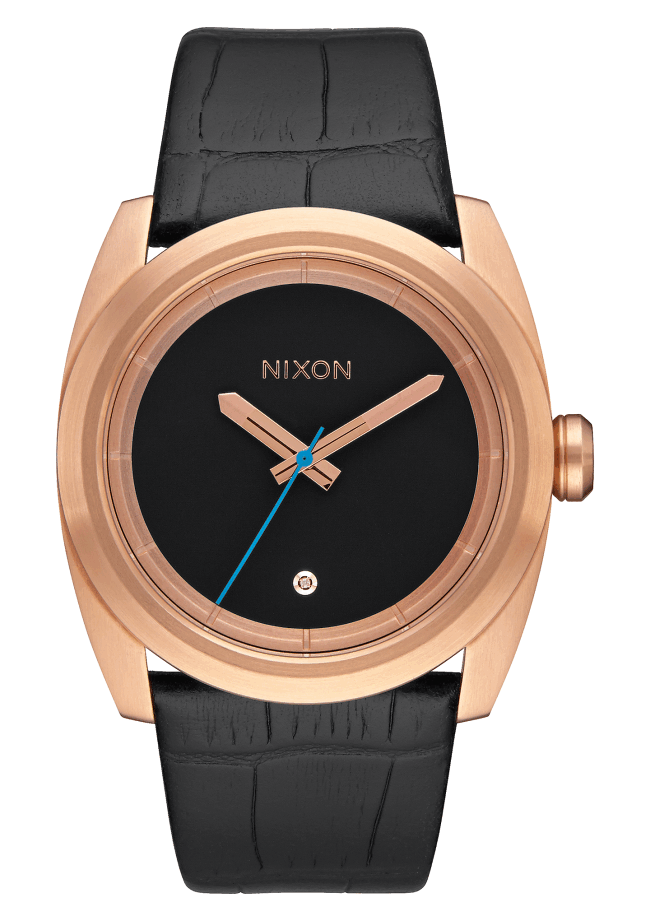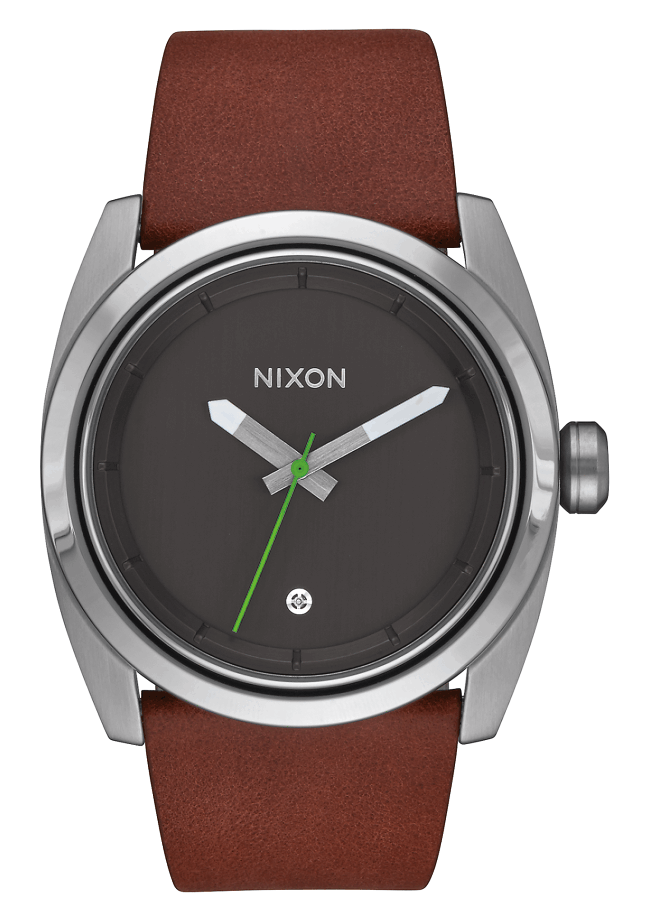 Clean, contemporary design with classic details, including a diamond at 6 oclockFeatures:– Concave dial ring inspired by skate bowl coping with stamped hours indices– 3-hand movement with crown placement at 3 oclock– Custom, tapered leather strap with custom molded stainless steel buckle closure.– Tapered, custom solid stainless steel bracelet with screw bar lugs for secure […]