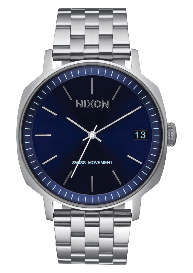 From Nixon’s Regent II SS line, this stylish timepiece exudes understated cool in a classic design. The unique, navy blue dial features a concave dial ring with applied indices, seconds track and a date magnifier. The stainless steel bracelet secures comfortably with a double locking clasp. Swiss quartz 3 hand movement with date function and […]
