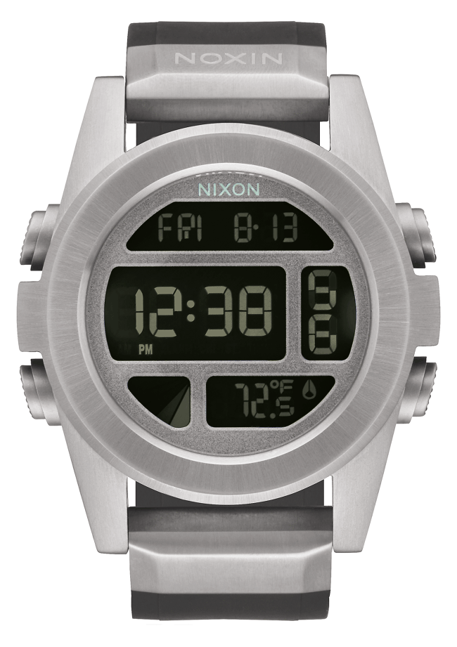 – Time and Date: All digital calendar, dual time, alarm, countdown and light on a negative display LCD dial