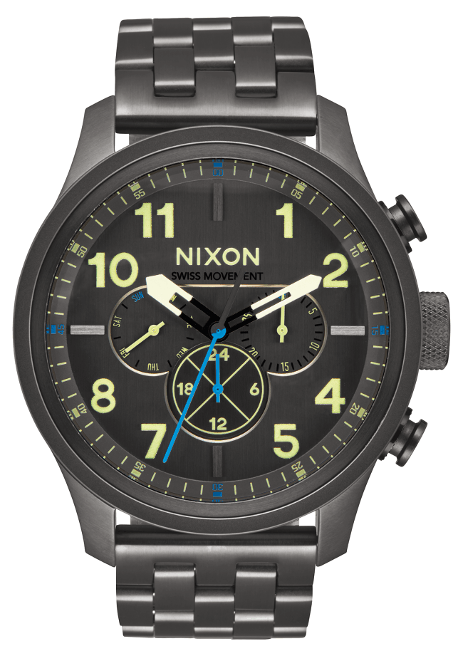 – WATCH CASE: 43mm, 100 meter/10 ATM custom stainless steel case with hardened mineral crystal.