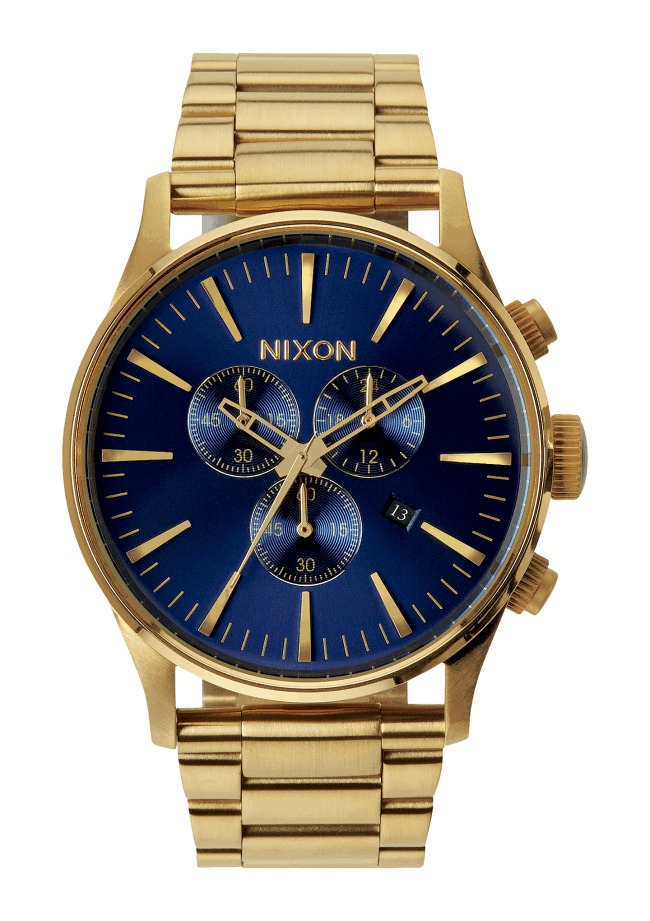 A timeless 42 mm design with the modern Nixon twist of faceted applied hour indices